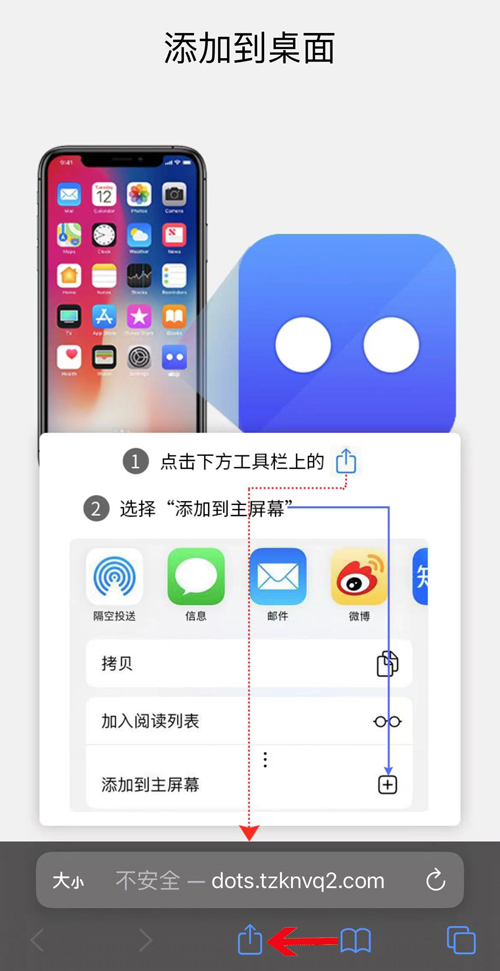 3,点击添加到主屏幕,如下所示: