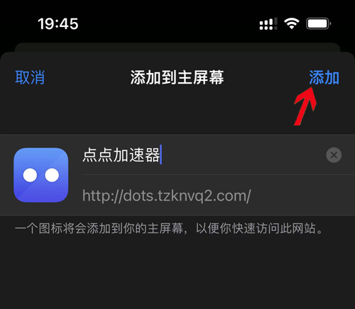 5,添加完成后,我们再去看苹果手机屏幕位置已经添加了点点加速器app图标,如下: