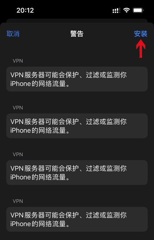 10,显示安装描述文件,点击右侧顶端安装: