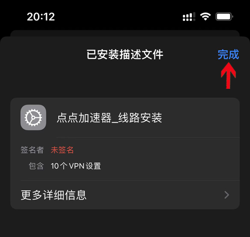 12,已安装描述文件,点击完成即可: